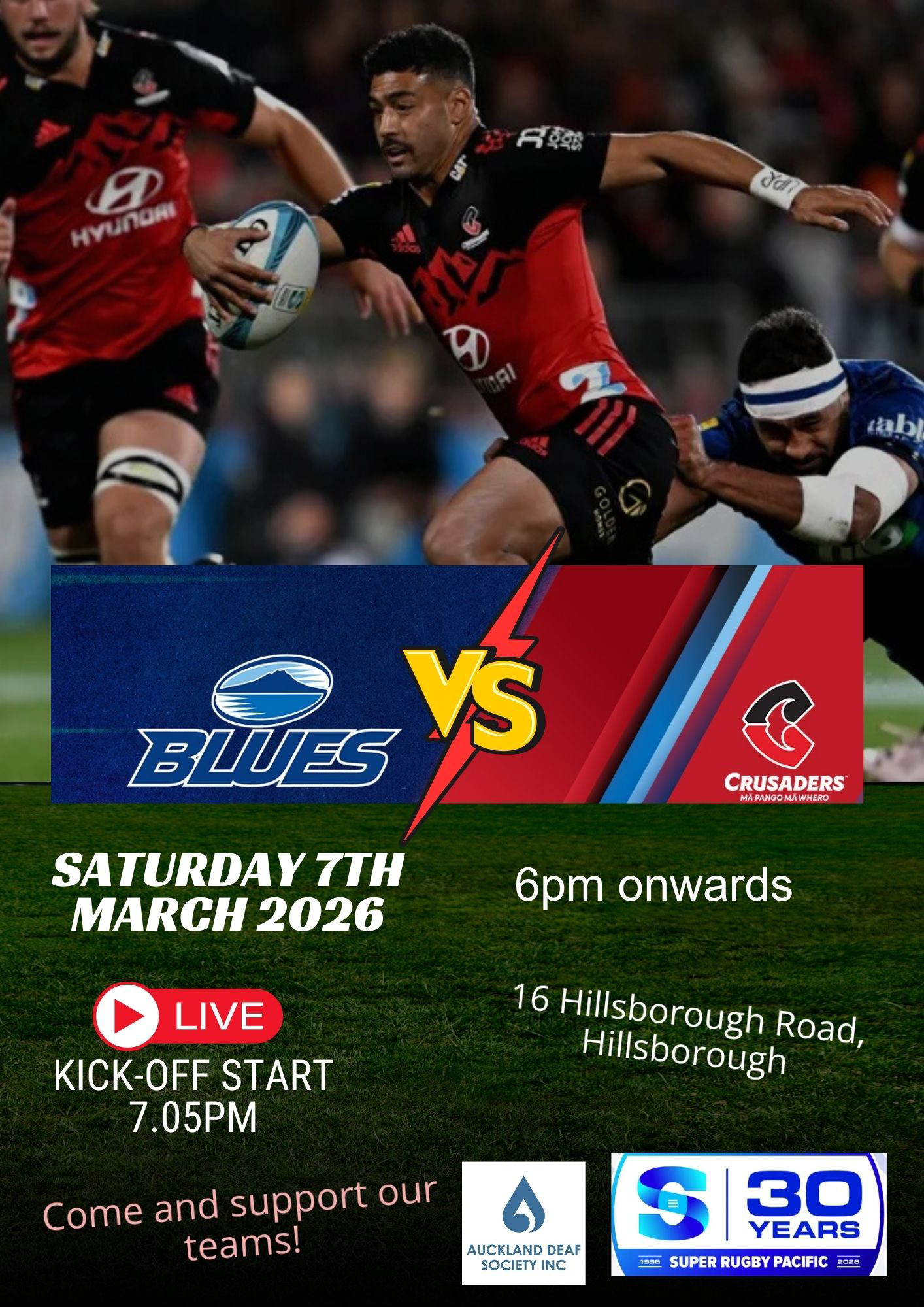 Blues vs Crusaders Rugby – Big Screen at ADS